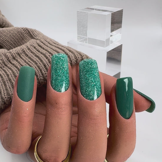 Verdora ist ein tiefes, edles Tannengrün mit feinen, hellen Sparkle-Partikeln, die im Licht wie kleine Smaragde aufleuchten. Der Ton wirkt satt, natürlich und luxuriös – wie ein dunkler Wald nach Regen, kombiniert mit einem modernen Glam-Effekt. Ein ausdrucksstarkes Grün mit Tiefe, elegant, kräftig und stilvoll.