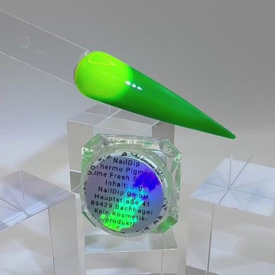Frisch & spritzig: Dieses Thermopigment wechselt je nach Temperatur von kräftigem Grün zu leuchtendem Gelb – ein lebendiger Farbwechsel, der an eine frische Limette erinnert.